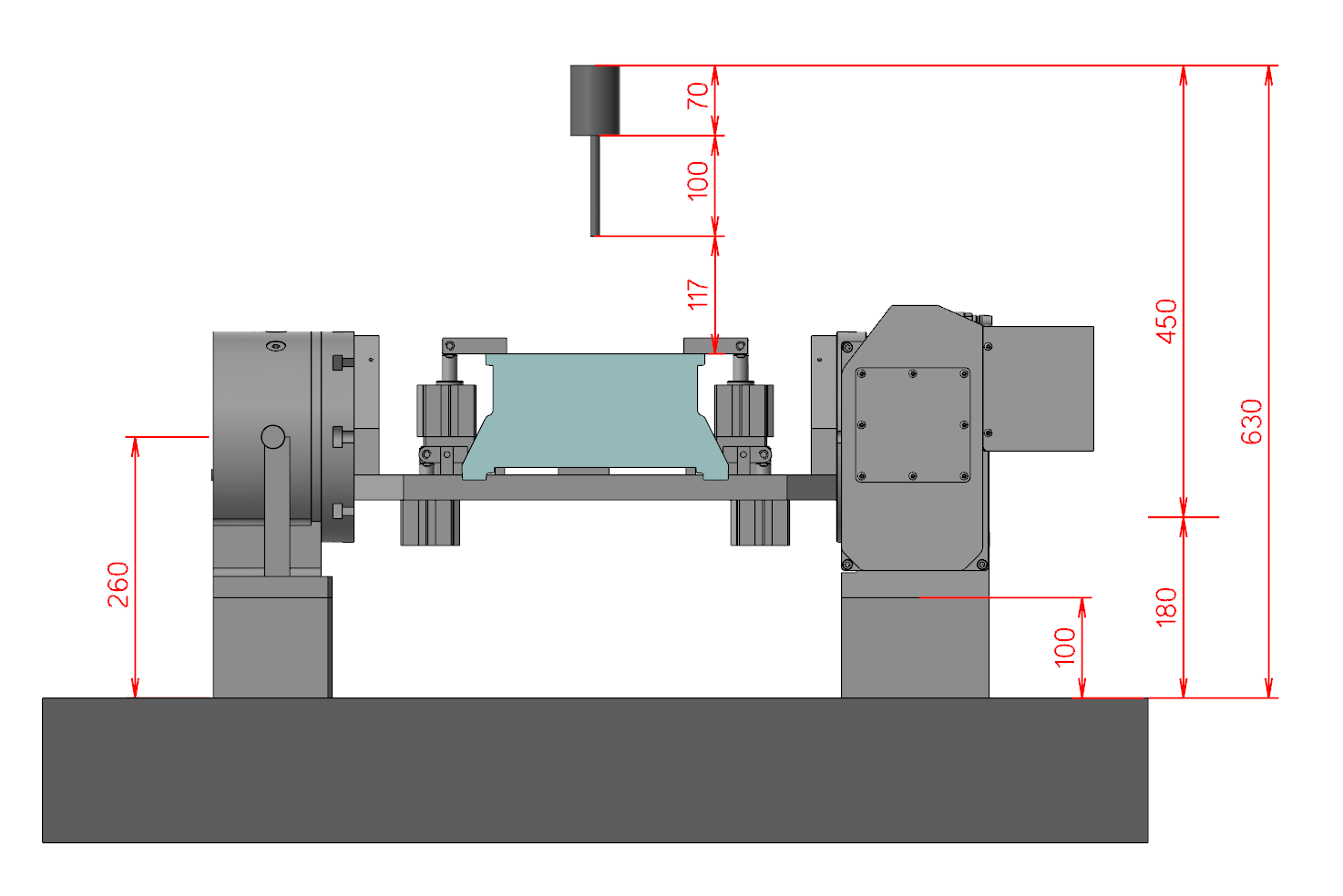 通過工件和夾具的最大外接圓模擬計算出四軸中心高需求